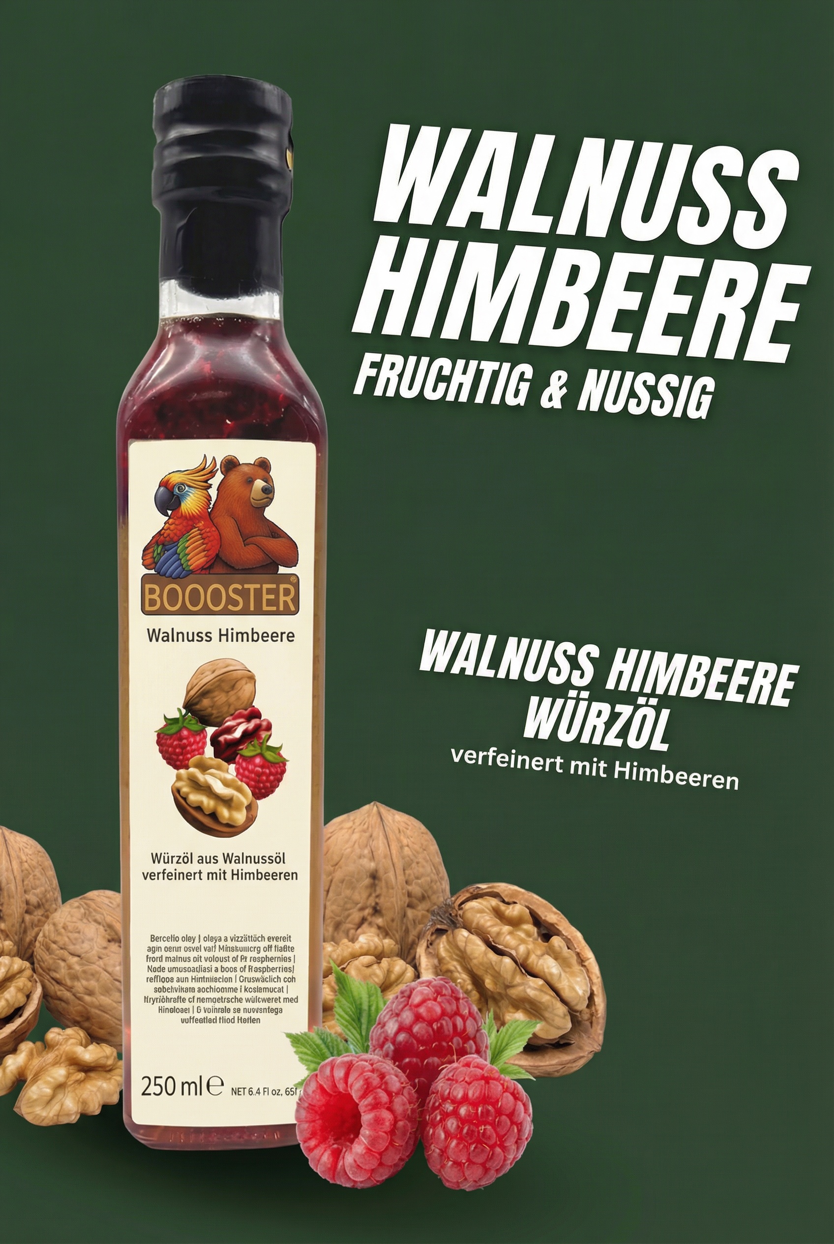 BOOOSTER Walnuss Himbeere Würz-Öl 250ml Walnussöl für Carpaccio & Salat