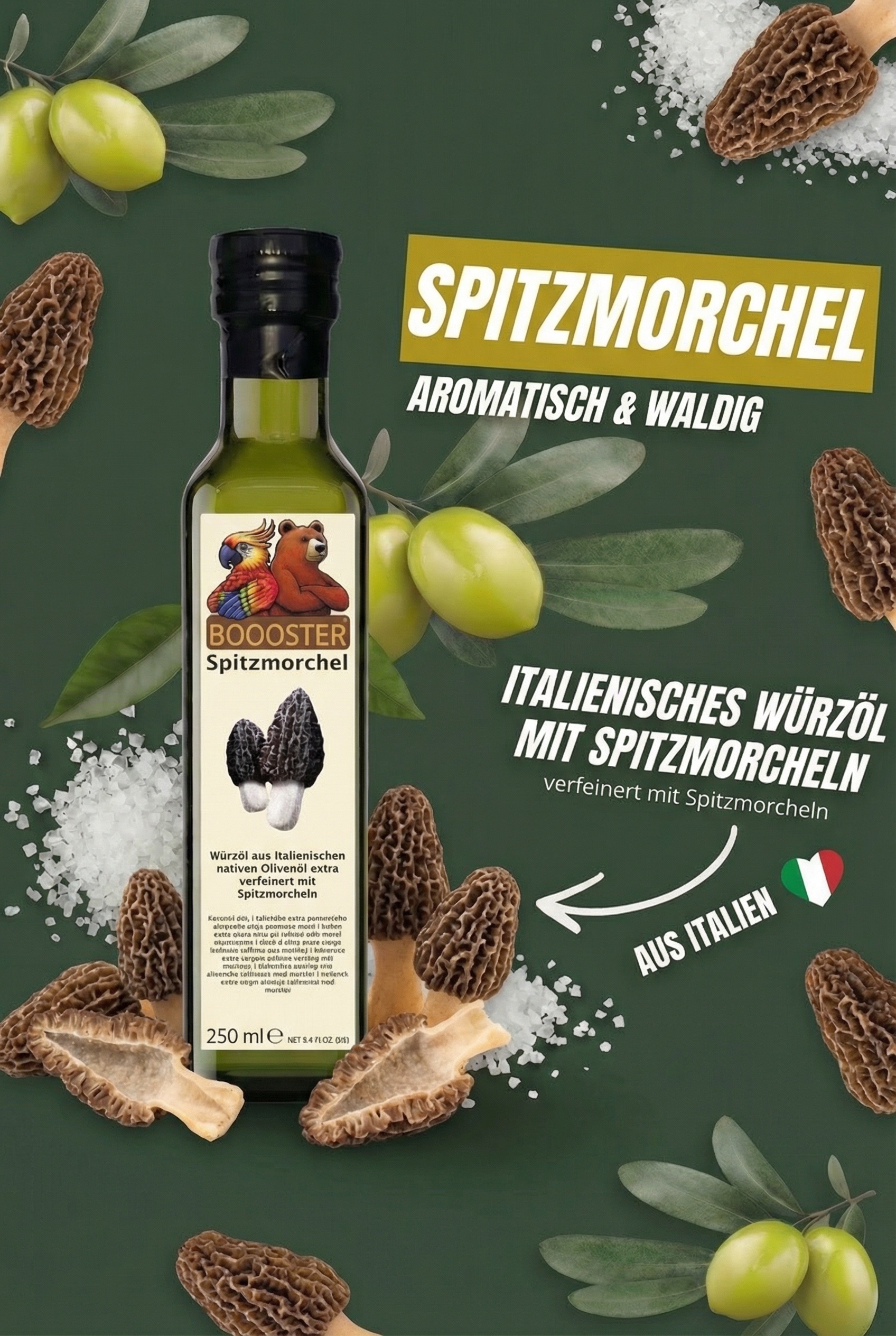 BOOOSTER Spitzmorchel Würz-Öl 250ml Natives Olivenöl Extra aus Italien