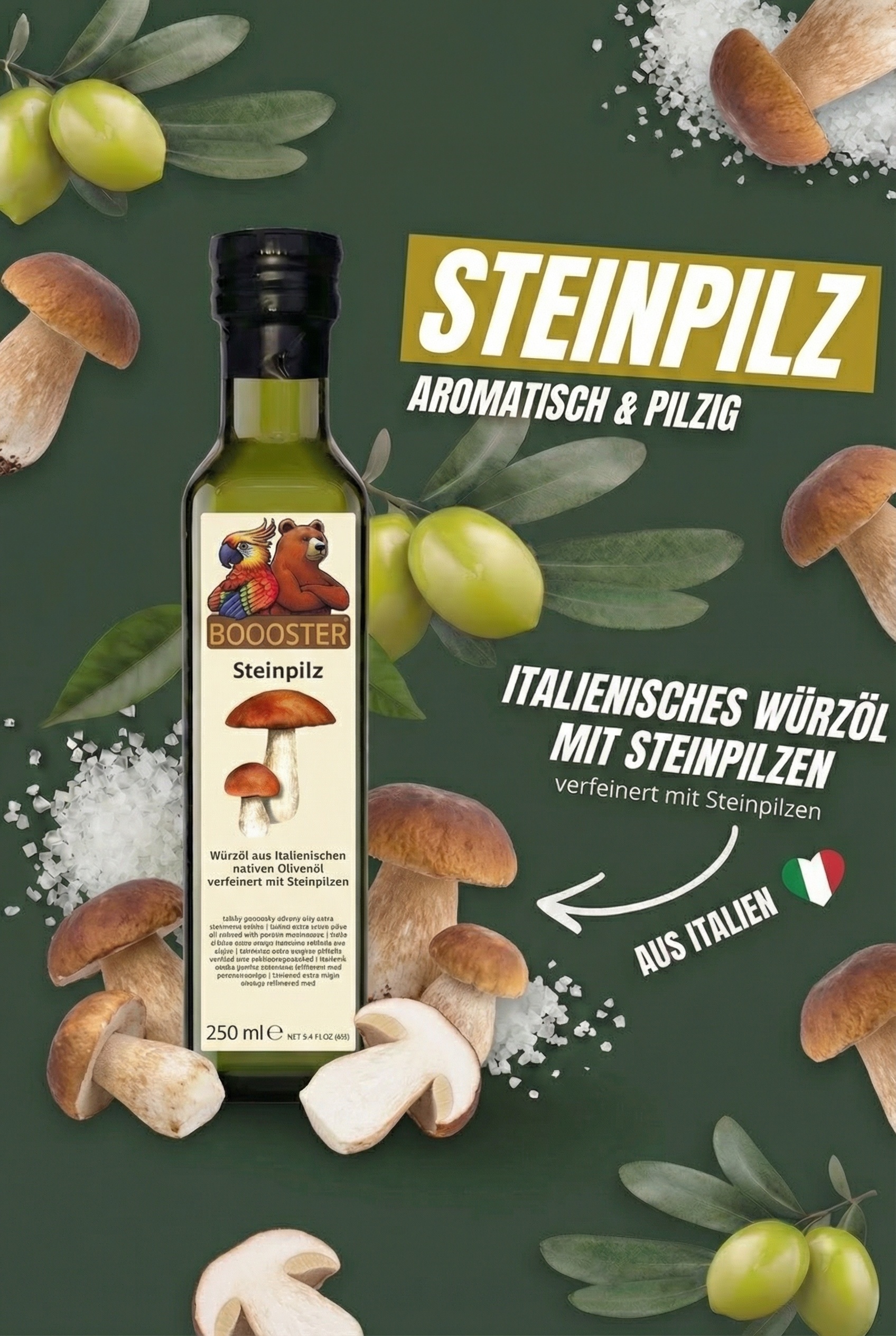 BOOOSTER Steinpilz Würz-Öl 250ml Natives Olivenöl Extra aus Italien