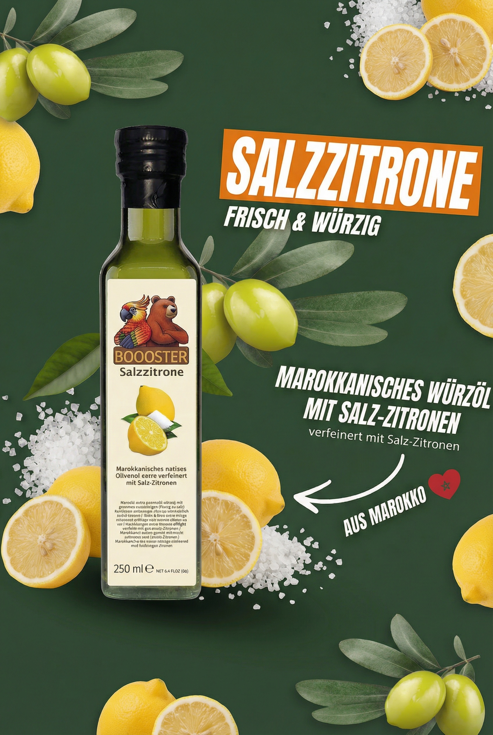 BOOOSTER Salzzitrone Würz-Öl 250ml Natives Olivenöl Extra aus Marokko