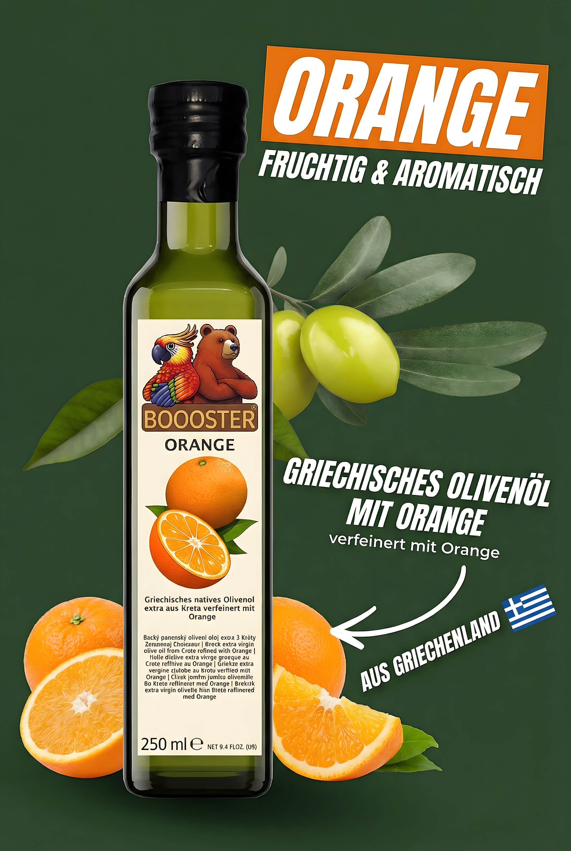 BOOOSTER Orange Würz-Öl 250ml Natives Olivenöl Extra & Oliven aus Kreta